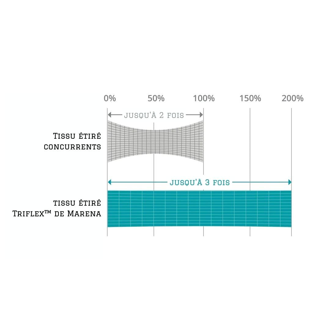 Avec notre technologie exclusive, notre tissu épouse votre corps en s'étirant jusqu'à 250% de sa taille initiale. Plus doux, plus flexible, TriFlex™ surpasse la concurrence à chaque mouvement.