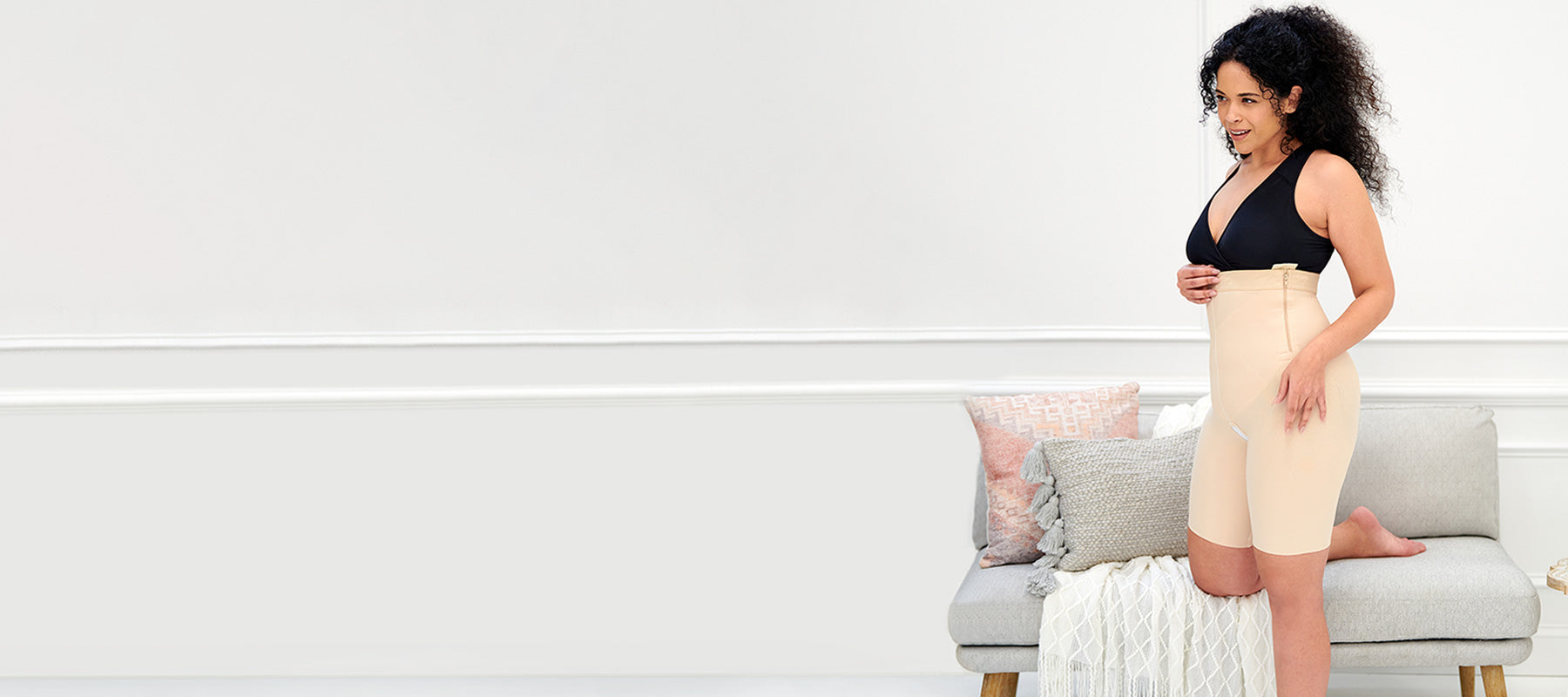 Nos vêtements de compression post-partum sculptants stabilisent votre ventre, dos et hanches, vous permettant de reprendre vos activités plus rapidement, tout en vous sentant et paraissant à votre avantage maximal.